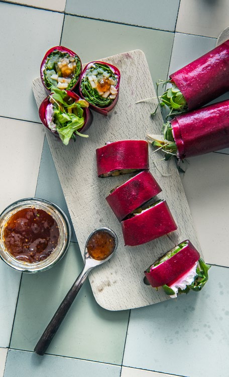 Rödbetssushi med getost och Belberry Fikon & Svartpeppar Marmelad